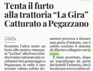 (…) E così i ladri hanno pensato di spaccare con il tombino la vetrata di ingresso del supermercato da Florio ma anche stavolta non sono stato fortunati: il sistema di allarme è collegato con La Lince, che in un battibaleno ha inviato una pattuglia (…)